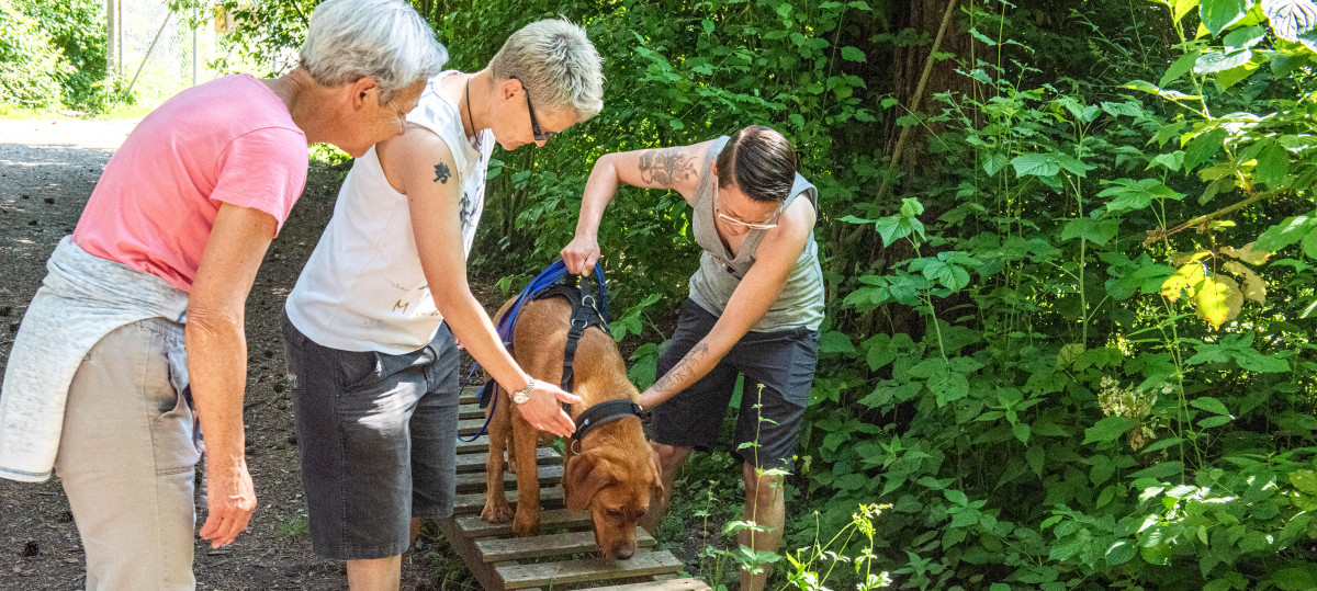 Hunde sind stets angeleint zu führen, Ausnahmen werden von der Kursleiterin